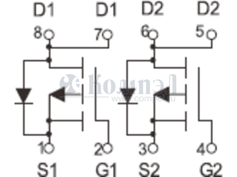 FET транзисторы производства JSCJ с Максимальное напряжение сток-исток до 100 В; Ток стока номинальный при 25°C до 11 А и Конфигурация и полярность Dual N, DUAL P, N, N+P