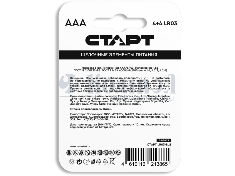 | Примечания: Широкий температурный диапазон работы, срок хранения 10 лет (Штрихкод: 4610116213865) | ||