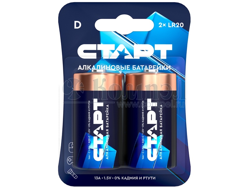 Комплект из 2-х батареек из серии наиболее крупных по габаритам («цилиндрический» типоразмер D) элементов питания от известного российского производителя СТАРТ, работающих на маргонцево-цинковом принципе и обладающих повышенной энергоёмкостью.В отличие от привычных всем солевых батареек алкалиновые служат в несколько раз дольше, а хранятся намного продолжительнее - до 10-ти лет, с минимальной потерей своей изначальной энергии.Заряд алкалиновых батареек расходуется равномерно на протяжении всего срока их службы. Поэтому Ваши приборы не перестанут работать внезапно, в самый критический момент - к примеру, карманный фонарь в тёмном лесу.Алкалиновые батарейки питают множество приборов, «гнёзда» которых соответствуют типоразмеру D. К таким устройствам относятся некоторые модификации переносной TV-аппаратуры, фотоаппаратов и вспышек, радиоуправляемых игрушек, консолей, фонарей и пр.