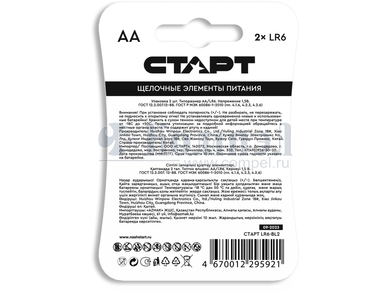 Две щелочные «пальчиковые» батарейки от компании СТАРТ в удобном блистере. Их выгодно отличает от солевых элементов повышенная долговечность и энергоёмкость. Батарейки работают с небольшим и стабильным расходом энергии на протяжении всего своего жизненного цикла. Поэтому никакого риска, что элементы внезапно выйдут из строя и устройство отключится в самый неподходящий момент - к примеру, фотоаппарат при съёмке важного торжества.Работать такие батарейки способны практически при любых погодных условиях - они не теряют свои рабочие характеристики в широком температурном диапазоне - от -18° до +50°.Щелочные элементы питания от компании СТАРТ отличаются завидной продолжительностью работы в разнообразных портативных устройствах: радиотелефонах, электронных будильниках, фотоаппаратах со вспышками, настенных часах, компьютерных клавиатурах и мышках, разнообразных ПДУ и пр.