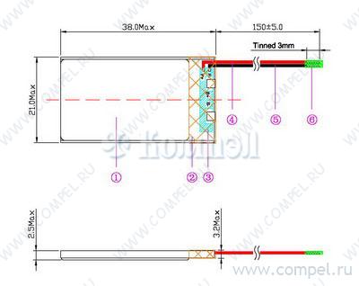 Аккумулятор литий-полимерный. Номинальное напряжение (В): 3,7. Номинальная емкость (мАч): 95. Рабочая температура (градусов С): -20+60. Число циклов разряд.заряд: 500 (при токе 0.5C5A), 800 (при токе 0.2C5A)