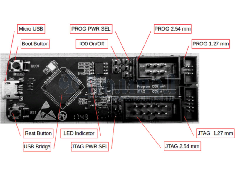 ESP-PROG, development and debugging tool, with functions including automatic firmware downloading, serial communication, and JTAG online debugging.
