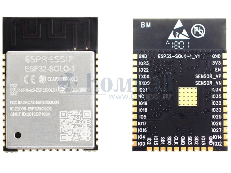 | Поддерживаемые интерфейсы: SD card, UART, SPI, SDIO, I2C, LED PWM, Motor PWM, I2S, IR, pulse counter, GPIO, capacitive touch sensor, ADC, DAC | ||