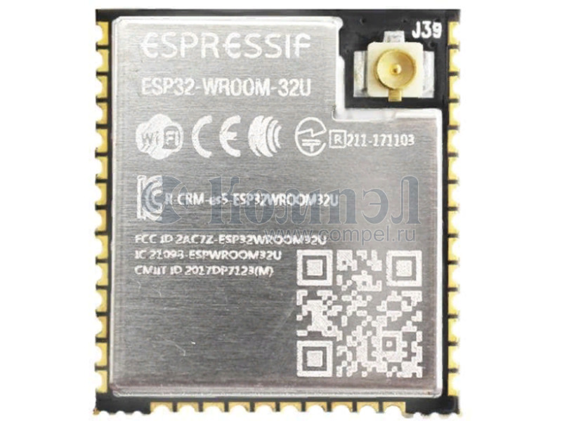 | P= | ESP32-WROOM-32U [4MB] (ESPRES) | — | в ленте 650 шт | — | — | GPIO, I²C, I²S, PWM, SDIO, SPI, UART | — | Chip ESP32-D0WD, Xtensa 32-bit LX6, 448kB ROM, 536kB SRAM, 4MB SPI flash, 802.11b/g/n, Bluetooth v4.2 + EDR, Class 1, 2, 3 | ||||||||||||