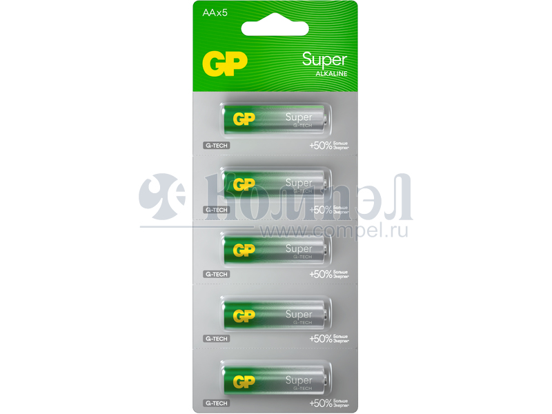 Алкалиновые батарейки GP Super Alkaline G-Tech 15А АA - 1 шт. на отрывных блистерах (Китай) Характеристики: 1,5 В Типоразмер АА, LR6 Номинальная емкость: 2500 мАч 5 отрывных мини-блистера