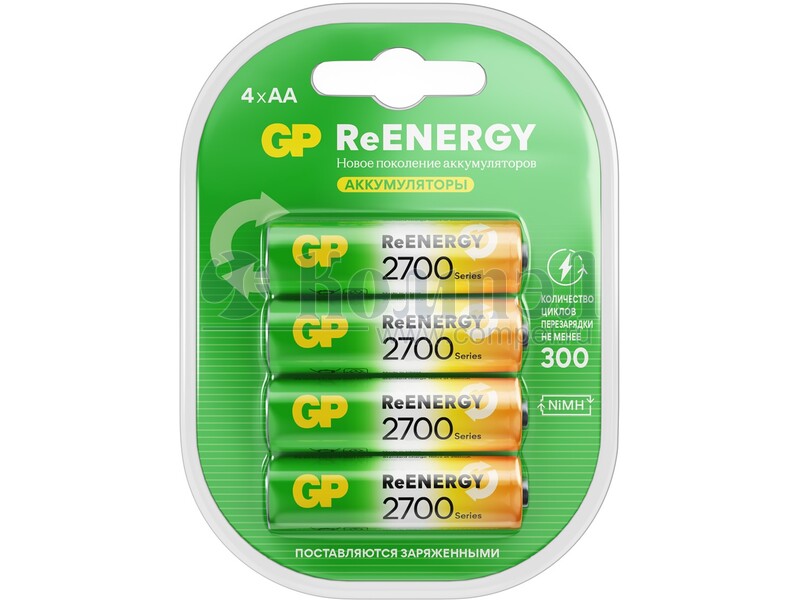 Перезаряжаемые аккумуляторы GP ReEnergy 270AAHC AA, емкость 2650 мАч - 4 шт. в клемшеле (Китай) / аккумулятор AA емкостью 2650 мАч Для фототехники