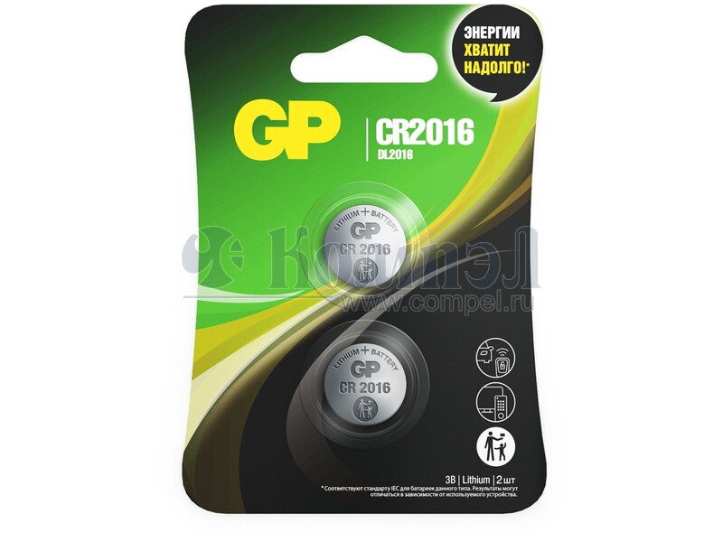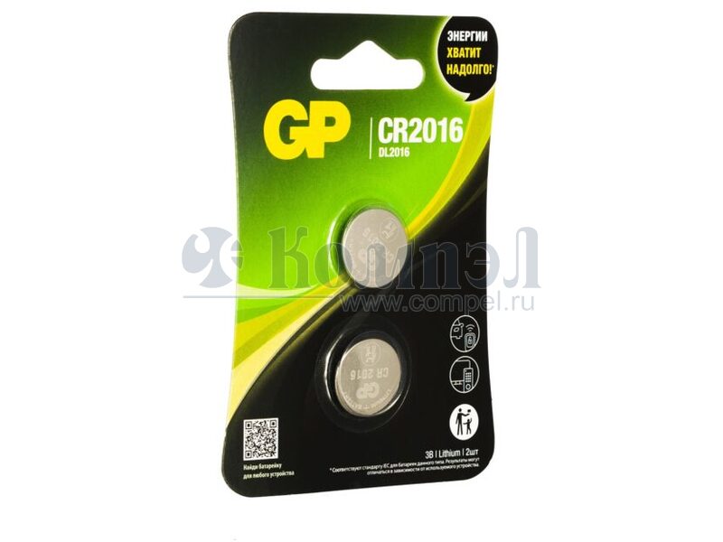 Литиевая дисковая батарейка GP Lithium CR2016 - 2 шт. в блистере (Китай) Характеристики: 3 В Номинальная емкость: 80 мАч Аналоги: CR2016, DL2016 1 шт. на блистере