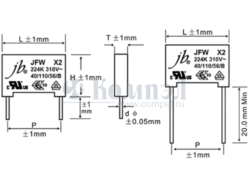 Документация на JFW 0.022uF 310V 10% X2 18x11x5m P:15mm / JFW0A9223K150000B