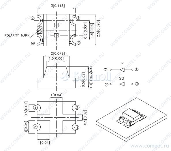 | Примечания | Dual Color LED, Yellow/super Bright Green, Water Clear, 2mm |