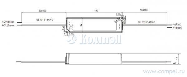 AC-DC источник питания: мощность 100 Вт, выходное напряжение 36 В, ток 2.8 А, входное напряжение 90-264 В, IP67, -25...+70C
