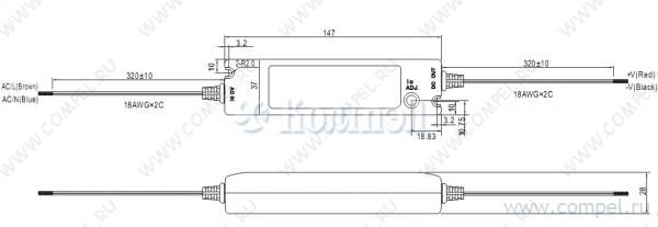 ИП для светодиодного освещения: 20 Вт; 1600 мА / до 12 В (стаб. по току или напр.); вход: 90…264 В; IP64