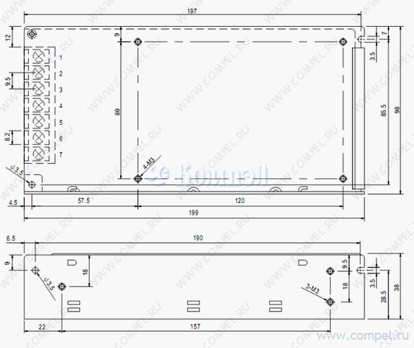 Компактный AC-DC (DC-DC), 125Вт, Uвх=88-264VAC (120-370VDC), два выхода +12В/7А, +48В/2.5А, подстр. Uвых1=-5/+10%, изоляция 3кVAC (вх-вых), 1,5кVAC (вх-корп), 199х98х38 мм, -20...+70°С Производитель: MEAN WELL