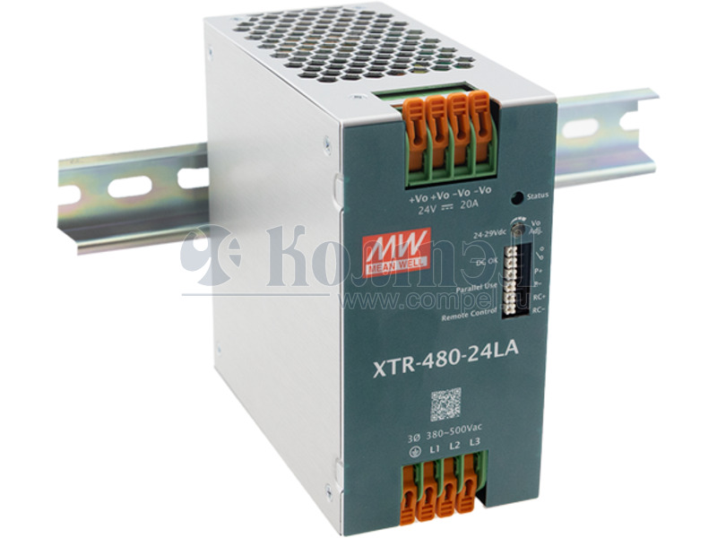 AC/DC преобразователь: на DIN рейку; 480 Вт; выход 24В @ 20А; вход: 90...264VAC / 127...370VDC; -25...70°C