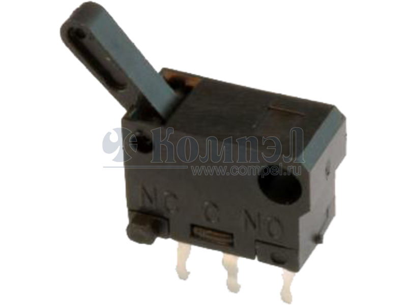 Переключатель - Тип компонента: Переключатель; Тип переключателя: Micro; Конфигурация: SPDT; Нагрузка: 0.1 A; Монтаж: Сквозные отверстия; Актуатор: Angled Toggle (Detector)