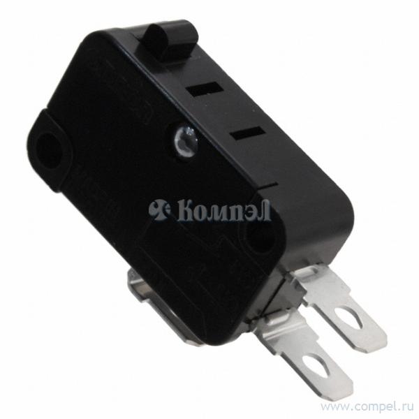Переключатель - Тип компонента: Переключатель; Тип переключателя: Micro; Конфигурация: SPDT; Нагрузка: 15 A; Монтаж: На шасси; Актуатор: Round (Pin Plunger)