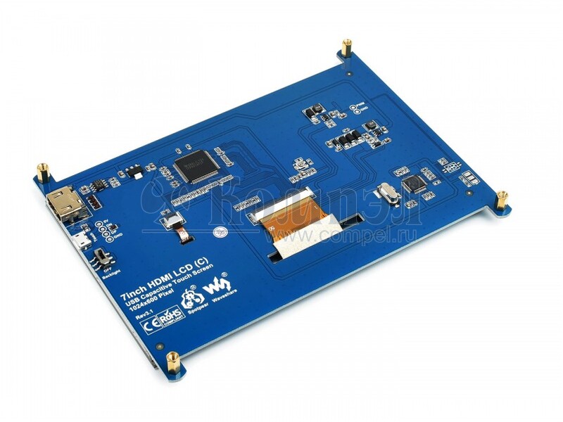 7 дюймовый LCD дисплей с емкостным сенсорным экраном с HDMI интерфейсом для одноплатных компьютеров и встраиваемых решений. Особенности: Высокое разрешение 1024 х 600 px, емкостное сенсорное управление; Поддерживает Raspberry Pi, работает с ОС Raspbian; Поддерживает Banana Pi / Banana Pro, работает с ОС Raspbian и Lubuntu; Поддерживает BeagleBone Black, работает с ОС Angstrom; Работает не только с мини-ПК, может работать в качестве HDMI монитора с любыми другими устройствами (сенсорные функция в данном случае недоступны); HDMI интерфейс для вывода информации, USB интерфейс для сенсорного управления; Регулируемая подсветка для снижения энергопотребления. Комплектация: Дисплей (7inch HDMI LCD (C)); Кабель HDMI (HDMI cable); Кабель USB (USB type A plug to micro B plug cable); Крепеж (RPi LCD screws pack (4pcs)).