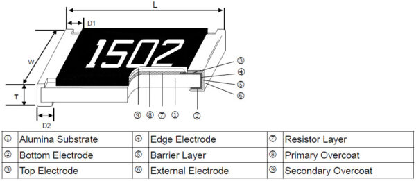 В рамках сотрудничества с одним из крупнейших азиатских производителей пассивных компонентов – компанией Viking – Компэл существенно расширил складскую программу по чип-резисторам. Складская линейка Компэл обновилась за счет чип-резисторов общего применения серии CR, выполненных по толстопленочной технологии (Thick Film). Данный тип резисторов является наиболее массовым и популярным в силу ценовой доступности и ликвидности, его применение на плате в стандартном электронном изделии достигает до 30% от общего количества позиций. Конструкция стандартного чип-резистора серии CR состоит из алюминиевой подложки, внутренних электродов, внешних выводов и ряда защитных покрытий:
