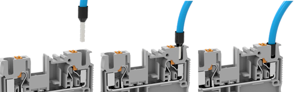 Рис. 12. Монтаж провода в изолированном втулочном наконечнике в зажим технологии Push-In