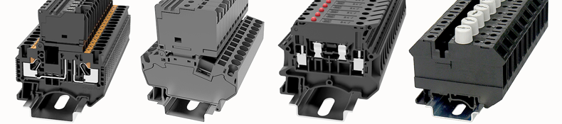 Не менее часто используются обычные плавкие предохранители. Интеграция их в проходные клеммы – это удобная и простая защита цепей и компонентов системы от аварийных ситуаций. На рисунке 26 показаны несколько различных исполнений клемм с плавким предохранителем.