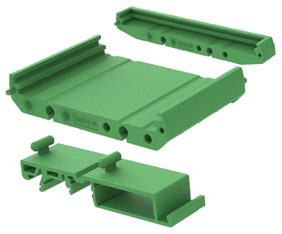 Помимо вышеперечисленных корпусов, компания DEGSON предлагает открытые монтажные основания семейств DM и DMK, выполненные из экструдированного профиля. Они позволяют закрепить печатную плату с компонентами на DIN-рейке, создав компонент, аналогичный изображенному на рисунке 36.