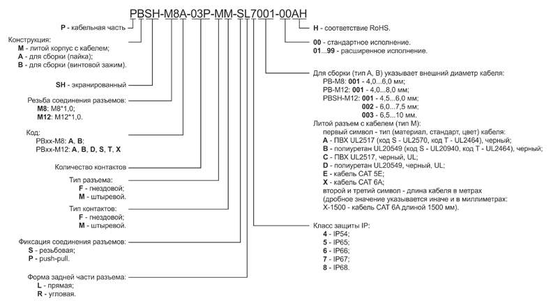 Рис. 8. Расшифровка наименования кабельной части разъемов семейств М8 и М12