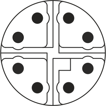 Семейства M8 и M12 включают в себя панельные (для монтажа на корпус устройства) и кабельные части. Разъемы для кабеля представлены несколькими моделями: экранированные или без экрана, для сборки (присоединения кабеля) или литые с кабелем, с различным числом контактов гнездового или штыревого вида. Помимо разъемов с прямой формой, изображенной на рисунке 1, существуют варианты с выводом кабеля под углом 90° (рисунок 3).