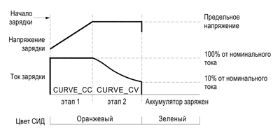 - 2- или 3-ступенчатая зарядная кривая, выбираемая DIP-переключателем.
