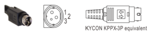 | Min. DIN 3 Pin with Lock (male) | Обозначение | Назначение контактов | ||||