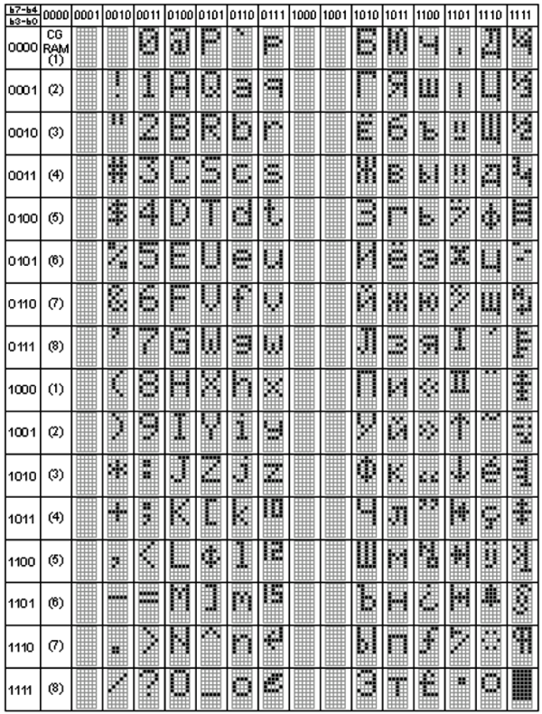 Рис. 2. Знакогенератор дисплея с символами кириллицы