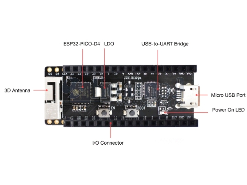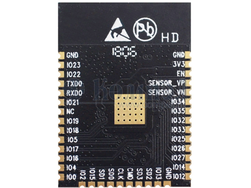 | 1 шт | SD card, UART, SPI, SDIO, I2C, LED PWM, Motor PWM, I2S, IR, pulse counter, GPIO, capacitive touch sensor, ADC, DAC | 18×25.5×3.1 мм | |||||||||